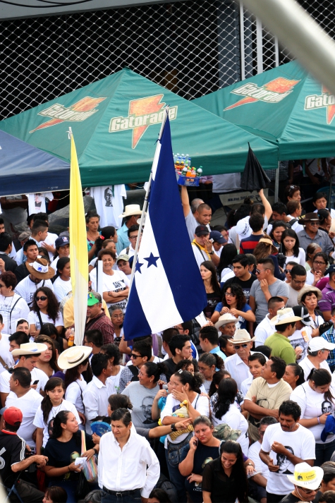 Entre los miles de católicos que se congregaron en la Plaza Salvador del Mundo figuraban grupos de religiosos hondureños que el viernes habían participado en la homilía que ofició el cardenal Rodríguez.