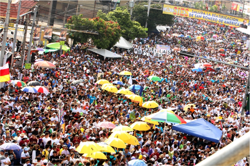La beatificación de Romero, asesinado en marzo de 1980 cuando oficiaba una misa en la capilla de un hospital para personas enfermas de cáncer en San Salvador, se llevó a cabo en la Plaza Salvador del Mundo, donde se reunieron más de 300,000 personas de diferentes partes del mundo, entre ellos muchos hondureños.