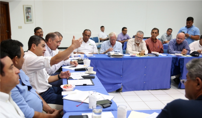 El mandatario compartió, en las instalaciones de la Fundación Hondureña de Investigación Agrícola (FHIA), con expertos nacionales e internacionales en la conservación del agua y que trabajan en la búsqueda de solventar los problemas ocasionados por la sequía en lo que a producción y productividad agropecuaria se refiere.